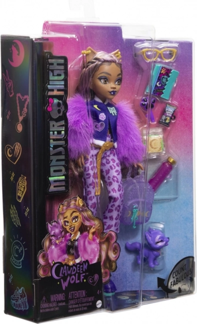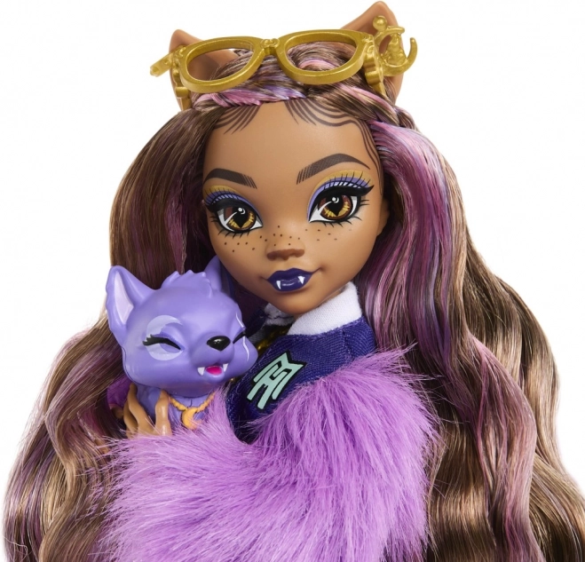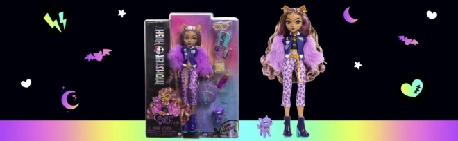 Clawdeen Wolf brilla con una giacca pelosa e pantaloni con stampa leopardata che esaltano il suo stile sicuro di sé.