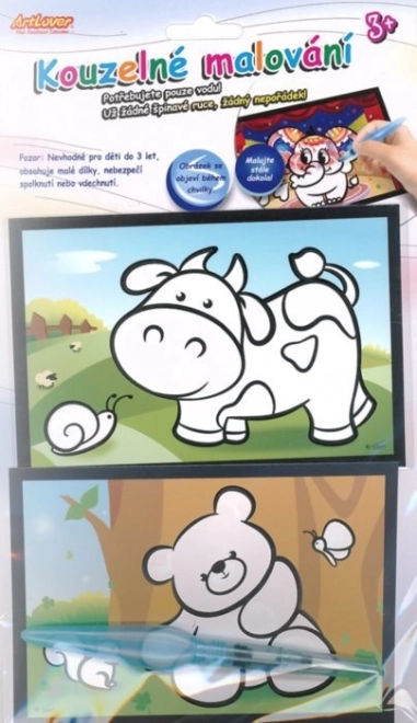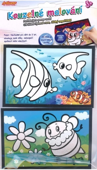 Il disegno magico con acqua intrattiene anche i più piccoli creativi. Basta solo acqua e, grazie allo speciale strato bianco sulle immagini che scompare quando viene inumidito, è possibile creare magiche immagini colorate. Una volta che l’immagine si asciuga, torna a coprirsi di bianco, consentendo di dipingere di nuovo e ancora.