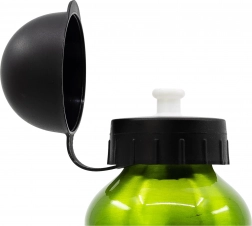 Un tappo di sicurezza con bocchino e chiusura scorrevole bianca facilita il bere in movimento.