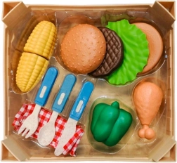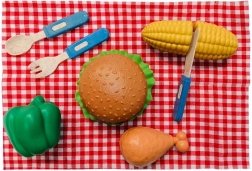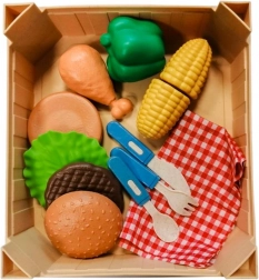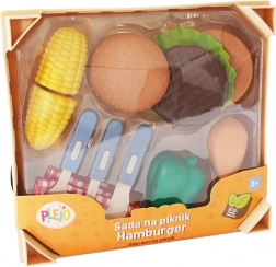 Il set da picnic Plejo è ideale per tutti i piccoli cuochi che vogliono provare la sensazione autentica di preparare il proprio hamburger. Include una vasta gamma di imitazioni di cibo in plastica, tra cui panini per hamburger, carne, verdure e accessori.