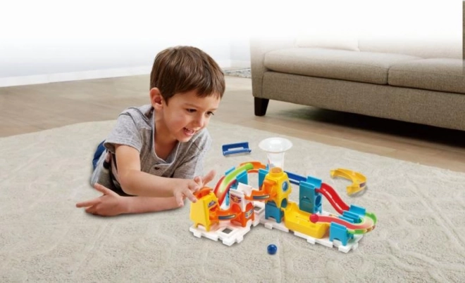 La Pista a biglie Set di partenza Fulmine è una scelta ideale per ogni piccolo costruttore. Questo giocattolo consente di creare assemblaggi unici e divertenti, permettendo ai tuoi bambini di sviluppare le loro capacità creative e costruttive. Con un chiaro manuale a colori è possibile montare facilmente la pista e grazie alla possibilità di collegare altre serie si può continuamente espandere il proprio campo di gioco.