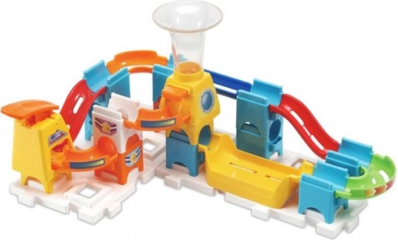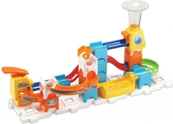 La pista a biglie è realizzata in plastica colorata, garantendo un aspetto accattivante e un divertimento duraturo. Grazie ai diversi componenti colorati, la pista diventa visivamente attraente per tutte le età.