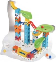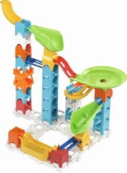 Il set contiene abbastanza pezzi per permettere ai bambini di reinventare e ampliare continuamente la loro pista per biglie.