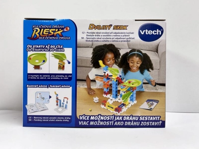 Pista per biglie Blesk è ideale per coloro che vogliono coinvolgere la creatività e il pensiero logico. Include 47 pezzi e 5 biglie, permettendo la modifica continua e la combinazione con altre piste per biglie. La guida colorata ti guiderà attraverso i vari modi per costruire la tua pista e sfidare amici e familiari in gare e competizioni.