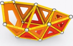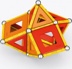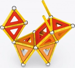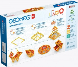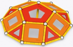 Scoprite la potenza della geometria con Geomag Classic Pannelli. Questo kit magnetico include 28 barrette magnetiche gialle, 20 sfere d'acciaio, 16 riempimenti triangolari, 2 riempimenti rossi a forma di pentagono e 12 riempimenti a forma di quadrato. È incluso anche un pratico contenitore in plastica per sfere e barrette.