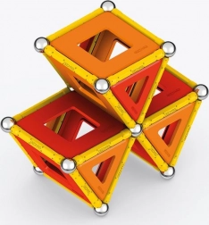 Geomag consente di creare innumerevoli costruzioni con pannelli colorati e barrette magnetiche.