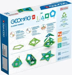 Scopri infinite possibilità di creazione con GEOMAG Classic Panels Recycled. Le robuste barrette magnetiche e sfere metalliche tengono le costruzioni saldamente insieme, mentre i resistenti pannelli a forma di triangoli, quadrati e pentagoni aggiungono stabilità e un design accattivante. Ricostruisci i modelli in un attimo e sviluppa la fantasia senza limiti.