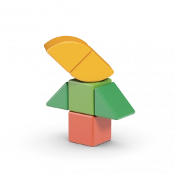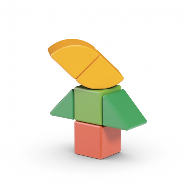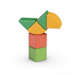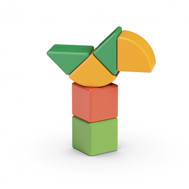 La combinazione di cubetti e altre forme sviluppa creatività, motricità fine e pensiero logico fin dalla tenera età.