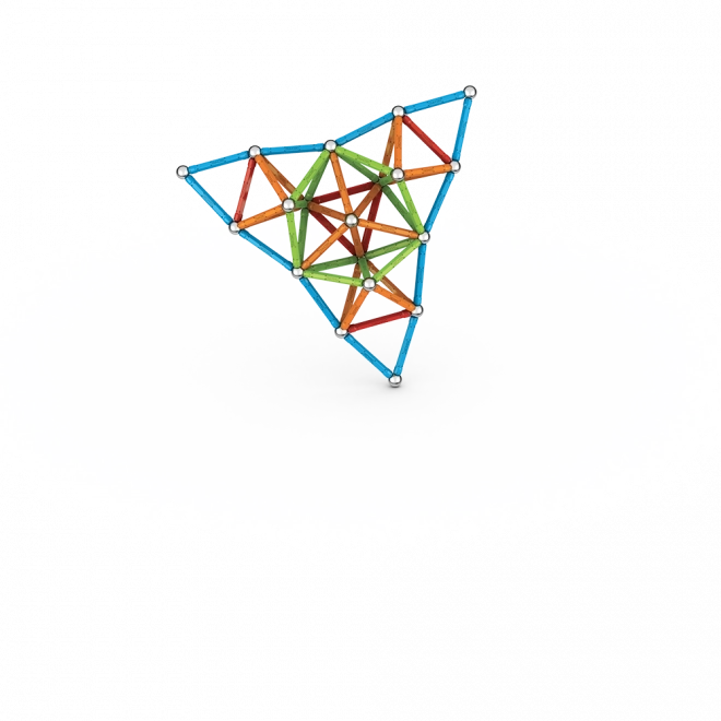- 68 aste magnetiche, 68 sfere d'acciaio, 3 basi quadrate, 3 basi pentagonali
