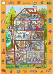 Il puzzle con tema “In casa” offre una combinazione unica di composizione e gioco di ricerca. I bambini prima assemblano una grande immagine colorata e poi vi cercano gli elementi nascosti, rappresentati ai lati della cornice. Il divertimento non finisce con l’inserimento dell’ultimo pezzo.