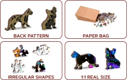 Questo puzzle è bifacciale, il che significa che può essere assemblato secondo l'immagine sul fronte o seguendo il motivo sagomato sul retro. Il design ecologico assicura che non ci siano imballaggi in plastica, ma solo un sacchetto e una scatola di carta.
