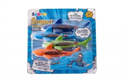 4 squali colorati che, una volta gettati in acqua, affondano e tu devi recuperarli.