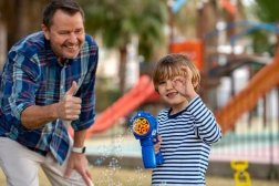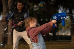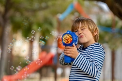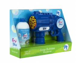 Spara-bolle Fru Blu lancia ad alta velocità un’enorme quantità di bolle e offre a tuo figlio ore di divertimento. Le bolle sono illuminate da luci LED che ne esaltano i colori unici. Grazie alla facilità d’uso e al contenitore del liquido anti-rovesciamento, fare le bolle è un’attività perfetta per bambini piccoli e grandi. Il set include lo sparabolle e una bottiglia da 0,4 litri di liquido. Batterie richieste: 3 x AA. Batterie non incluse nella confezione. Il giocattolo è adatto a bambini sopra i 3 anni.