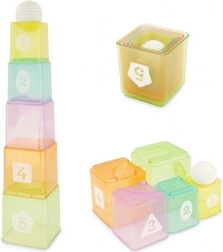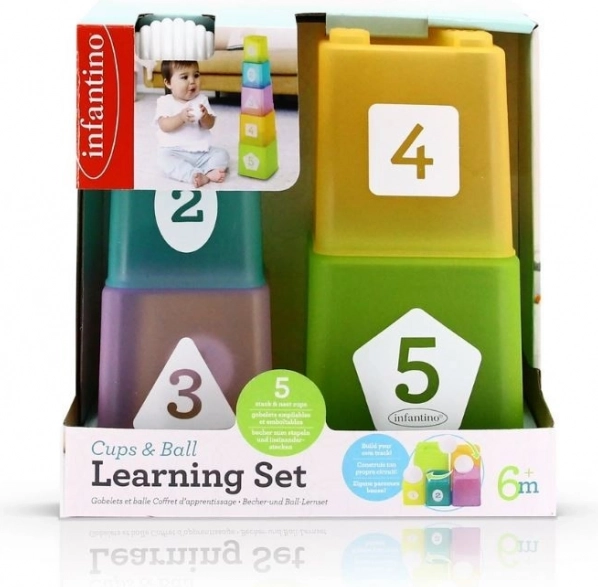Il set di bicchierini impilabili Infantino con pallina è ideale per le prime esplorazioni di forme, colori e numeri. I bicchierini trasparenti con numeri ben visibili possono essere impilati dal più piccolo al più grande per costruire torri stabili, sviluppando motricità fine e percezione spaziale.