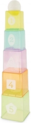 Set giocoso per i più piccoli: cinque bicchierini trasparenti in diversi colori con numeri e una pallina leggera. I bambini possono impilare i bicchierini a formare una torre oppure creare un tunnel e farci rotolare la pallina. Favorisce la motricità fine, l’apprendimento di colori e numeri e le abilità di coordinazione.