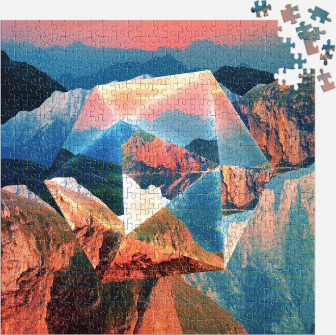 Il puzzle offre un design unico con forme geometriche di montagne ed effetti prismatici. Ideale per chi desidera combinare divertimento e sfida artistica.