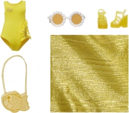 La bambola è pronta per una giornata di divertimento grazie al suo costume alla moda, completo di sandali e occhiali da sole. Perfetta per spiaggia, piscina o vasca, dove la fantasia permette.