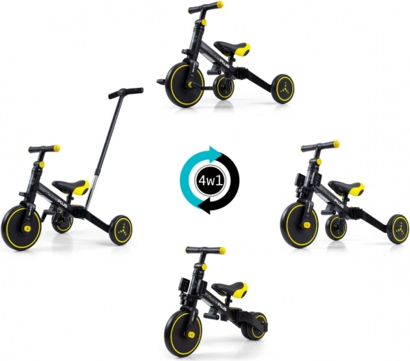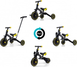 La 4in1 Optimus Plus si distingue per il manubrio supplementare per i genitori, che può aiutare il bambino quando è stanco, quando deve affrontare un tratto impegnativo o per rallentare in discesa. Il manubrio ha 4 livelli di regolazione in lunghezza e può essere rimosso quando il bambino cresce.
