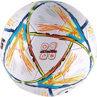 Pallone da calcio colorato affidabile e resistente per uso ricreativo e di allenamento. Grazie alla misura 5 e al diametro di 23 cm è perfetto per adulti e bambini più grandi. La lavorazione cucita e la superficie in pelle offrono un tocco piacevole, volo stabile e migliore controllo del pallone.
