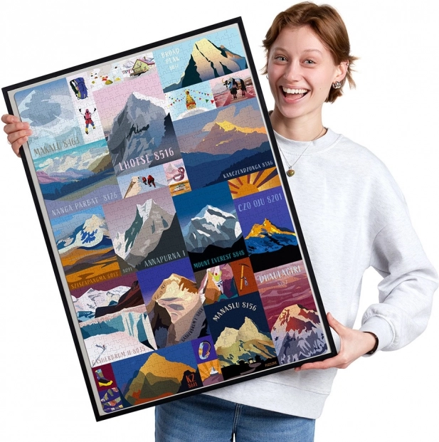 Per tutti i viaggiatori, amanti della montagna, escursionisti, alpinisti himalayani, scalatori e amanti delle bellezze naturali: componete il puzzle e trasferitevi nel mondo dei ricordi e/o dei piani per le prossime gite! Puzzlove Mountains è composto da 1000 pezzi. Metterlo insieme è una bella sfida, ma anche un ottimo modo per rilassarsi ed esercitare le cellule grigie del cervello. Fate un bel regalo a voi stessi o a qualcuno di caro!