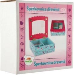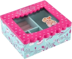 All'interno trovi scomparti ben organizzati che mantengono i gioielli separati e protetti. Grazie alla solida struttura in legno e alle cerniere affidabili, il portagioie è non solo bello ma anche resistente all'uso quotidiano. Il design fantasioso è perfetto sia come confezione regalo sia come decorazione per la cameretta.