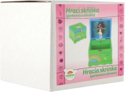 Questo portagioie musicale offre un luogo sicuro e ordinato per i tesori dei bambini. All'apertura del coperchio con specchietto integrato, dopo aver caricato la chiavetta, l'unicorno bianco‑rosa inizia a girare e parte una melodia che regala un sorriso a ogni apertura.
