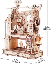 Dai vita a una macchina da stampa classica in un originale stile steampunk. Premendo la maniglia si mettono in moto gli ingranaggi, gli “orsi tipografi” figurativi azionano la macchina e, al termine del lavoro, si accende la luce. L’orologio medievale con astrolabio sul lato dona fascino e autenticità al modello. Ideale come progetto creativo fai-da-te, decorazione d’effetto e intelligente supporto didattico per sviluppare il pensiero tecnico.