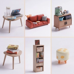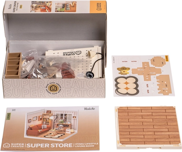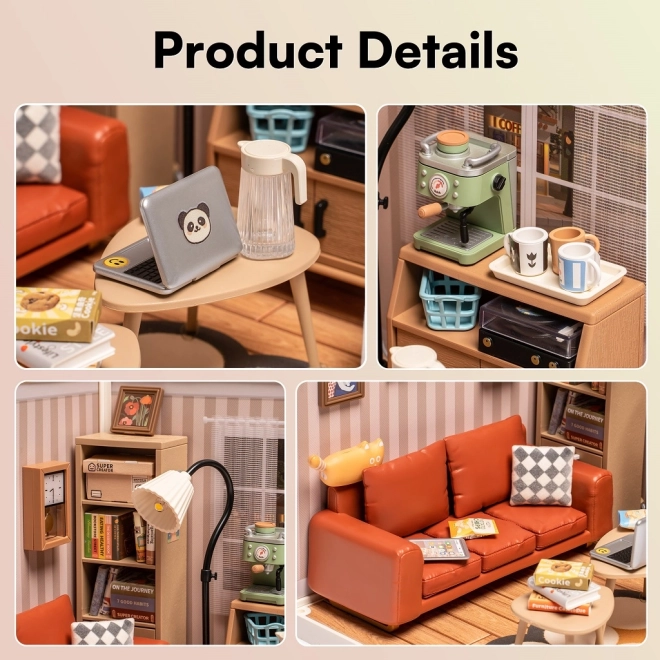 Questo kit creativo propone un interno realistico con divano, libreria, tavolino da caffè e lampada da terra. Una volta montato, diventa una decorazione elegante per studio, soggiorno o cameretta. La luce LED crea un’atmosfera piacevole ed evidenzia i dettagli accurati.