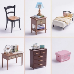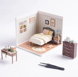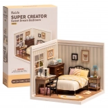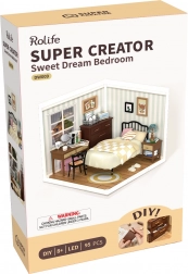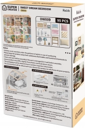 Scopri il fascino delle miniature con la camera Sweet Dream, dove le tonalità naturali del legno e i dettagli giallo crema creano un'atmosfera calda. Il set include letto, comodino con lampada, scrivania con specchio girevole, cassettiera e piccole decorazioni. Grazie alla luce LED risaltano tutti i dettagli e il modello diventa una decorazione d'effetto.