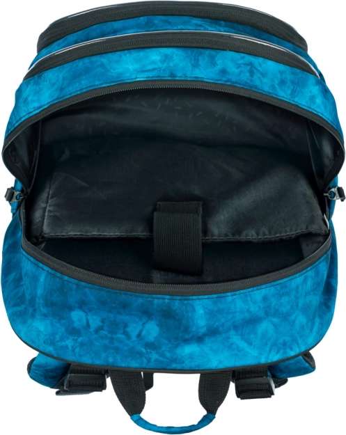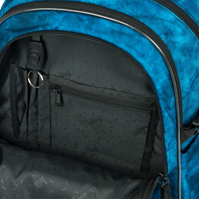 Lo zaino scolastico ergonomico BAAGL Core Ocean offre 3 scomparti separati con organizer, tasca per notebook da 15" e schienale ergonomico con spallacci regolabili. È estremamente leggero (900 g), ha capienza 25 l, è realizzato in materiale riciclato idrorepellente, con cerniere YKK ed elementi riflettenti per una maggiore sicurezza.