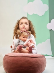 La bambola indossa un outfit coordinato con cappottino, sciarpa e ciuccio con clip. È possibile acquistare i vestitini originali Llorens per la misura 42 cm.
