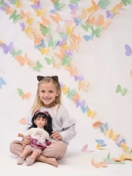 Greta colpisce per le bellissime ciglia, gli occhi e la delicata sfumatura del viso, che donano alla bambola un aspetto vivo e naturale.