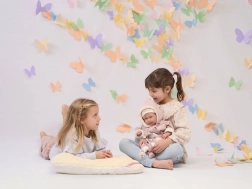 Premendo il pancino, la bambola piange, favorendo le capacità di cura e lo sviluppo dell’empatia nei bambini.