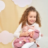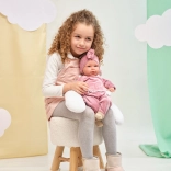 Viso lifelike, ciglia delicate e manine e piedini in vinile. Il pancino in tessuto è morbido, ideale per coccolare e portare in braccio.