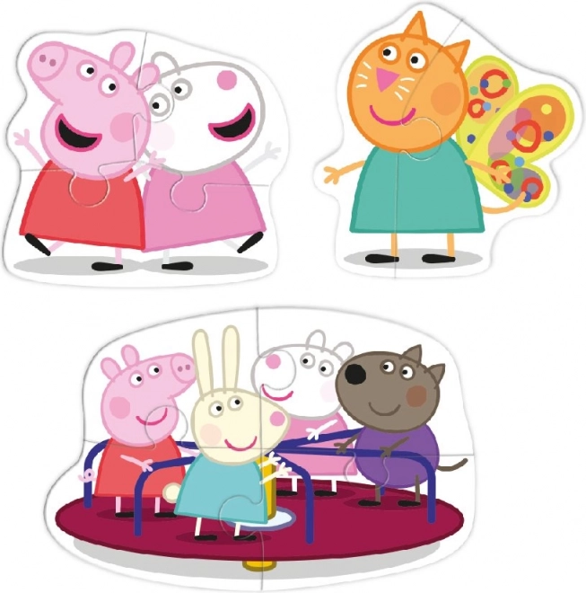 Scopri i divertenti puzzle per bambini ispirati alla serie amata Peppa Pig. Il set include 3 immagini sagomate con diverso numero di pezzi (2, 3 e 4), che favoriscono lo sviluppo dell'immaginazione, del pensiero logico e della motricità fine.