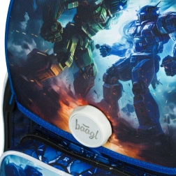 La cartella scolastica BAAGL Ergo Robots, leggera ed ergonomica per alunni di prima, offre sistema dorsale regolabile, chiusura magnetica Fidlock, materiale idrorepellente e elementi riflettenti per sicurezza e comfort ogni giorno.