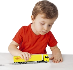 Il camion con semirimorchio DHL è ideale per tutti i bambini che vogliono giocare ai servizi di consegna. Questo modello in scala 1:87 è realizzato in una combinazione di metallo e PVC, assicurando lunga durata e resistenza durante il gioco. Grazie al meccanismo a ruota libera, i bambini possono divertirsi per ore senza bisogno di batterie. Il modello è dotato del logo DHL ben visibile, rendendo questo giocattolo una fedele replica dei veri veicoli di consegna.