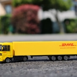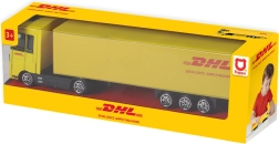 Questo camion è lavorato nei dettagli per riprodurre fedelmente un vero veicolo di consegna DHL, inclusi il caratteristico colore giallo e il logo.