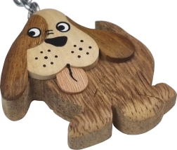 Eleva il tuo stile con questo unico portachiavi in legno a forma di cane. Accessorio fatto a mano che combina estetica e funzionalità, rendendolo il compagno ideale per le tue chiavi, borse o zaini. Realizzato con fino a cinque tipi di legno con colorazione naturale, che rimane intatta dalla tintura chimica.
