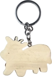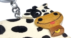 Il portachiavi è realizzato a mano con fino a cinque tipi di legno dal colore naturale. Il legno non è tinto, ma solo rifinito con dettagli dipinti a mano per dare vitalità al motivo della mucca.
