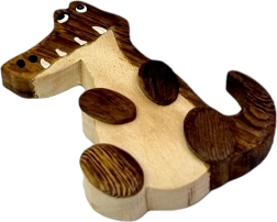 Questa originale calamita in legno a forma di coccodrillo si distingue per la precisa lavorazione artigianale e la combinazione unica di essenze naturalmente colorate. Ogni pezzo è un unicum: il legno non è tinto, ma solo rifinito a mano per i dettagli.