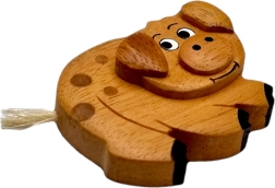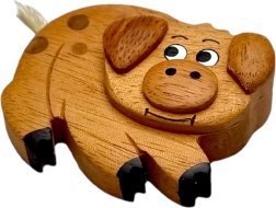 Questo magnete in legno a forma di maialino, di alta qualità, è realizzato con attenzione ai dettagli e alla vera maestria artigianale. La combinazione di legni esotici di diversi colori mette in risalto la venatura naturale del materiale – senza colorazione a piena superficie, solo con ritocchi manuali dei dettagli per un tocco giocoso.