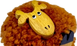 La calamita è composta da fino a cinque tipi di legno (ad es. albero del pane a foglie diverse, tamarindo di Manila, cassia, aniba, gmelina arborea), creando un aspetto naturalmente colorato e attraente senza l’uso di colori artificiali. Il morbido pompon in cotone dona un tocco giocoso e una piacevole texture.