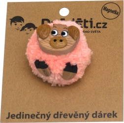 Una graziosa calamita in legno a forma di maialino con morbido pompon illuminerà qualsiasi frigorifero o bacheca magnetica. È realizzata a mano con fino a cinque tipi di legno naturalmente colorato, perciò ogni pezzo è unico. I materiali naturali, la lavorazione artigianale e il dolce motivo animale la rendono un ottimo elemento decorativo e un piccolo regalo per gli amanti degli animali.