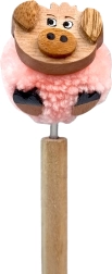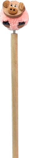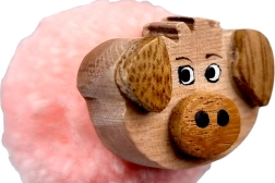 Morbido pon pon rosa con testina di maialino in legno che dona alla penna un aspetto unico e conquista piccoli e grandi amanti degli animali.