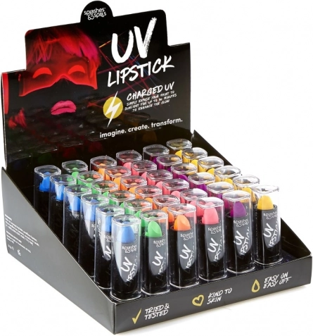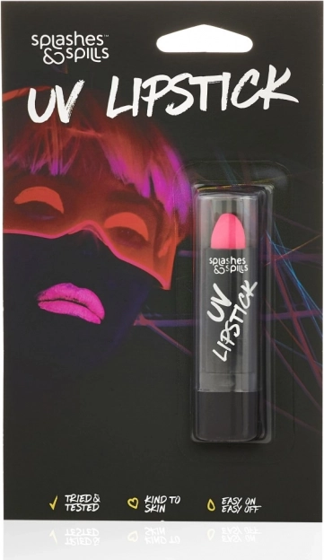 Con il rossetto UV Splashes & Spills ti assicuri un aspetto unico, che colpisce tutti al primo sguardo. Scegli il tuo colore preferito e lascia che le tue labbra brillino.
