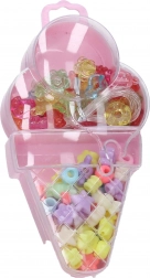 Scopri il divertente set di perline a forma di gelato, che include vari dimensioni e colori di perline insieme a un filo per una facile infilatura.