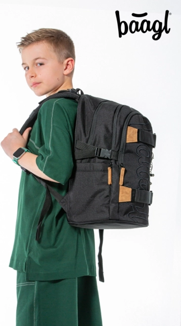 BAAGL Skate Darkness è uno zaino scolastico studiato per l’uso quotidiano a scuola, alle attività e per le uscite in città. Grazie ai tre scomparti separati con organizer interno e alla tasca imbottita riponi in sicurezza libri, quaderni e laptop o tablet da 15". Le tasche laterali rigide sono ideali per la borraccia, mentre le cinghie frontali tengono facilmente lo skateboard.