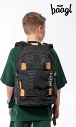 Il set scolastico Baagl 3 SET Skate Darkness è progettato per offrire massimo comfort, organizzazione e sicurezza. Schienale ergonomico sagomato, spallacci, cintura pettorale e cinghie di compressione laterali completamente regolabili garantiscono un’aderenza perfetta al corpo. Lo zaino ha tre scomparti separati con organizer, tasca imbottita per notebook o tablet da 15" e tasche laterali per la borraccia.