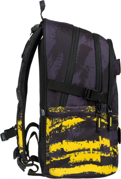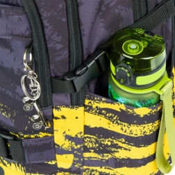 - Dettagli pratici: cinghie per skateboard, tasche laterali per borraccia, ciondolo metallico a forma di skate.